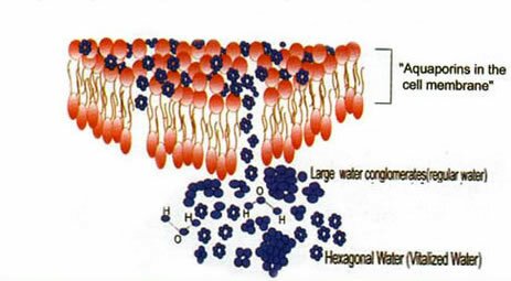 Вода, содержащаяся в здоровом организме, делает возможной жизнь, благодаря особому числу молекул в кластерах, организованным, регулярным, повторяющимся образом, что позволяет фосфолипидным молекулам клеточных мембран менять форму, сохраняя при этом свою целостность.
